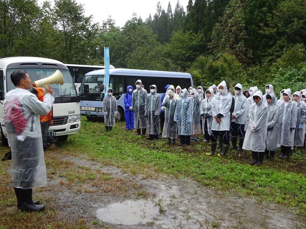 9月に行われた講演会での知識を活かし、今回は地元の水源の森の現状に触れその重要性を再確認し、実際に下刈り作業を体験しました。森林の大切さや森林を守り育てていく意識を高めることを目的とし、森林組合、地域振興局、羽後高校同窓会長の皆様のご指導もいただきながら行いました。