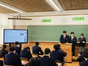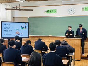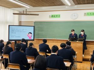 令和7年度 進路体験発表会 2026.02.17 本日、1,2年生対象に3年生による進路体験発表会が行われました。 以下の内容を中心に発表していただきました。 ①進路決定までの経緯&最終的にこの会社・学校に決めた理由 ②進路活動、就職、進学試験で大変だったことや失敗したこと