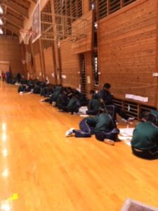HUG(避難所運営ゲーム) 2019.03.18 3月14日(木)、5・6校時を利用してHUG(避難所運営ゲーム)をおこないました。限られたスペースの中で続々と押し寄せる避難者等をどのように振り分けるか、さまざまな意見が交換されました。東日本大震災を通して学んだことを風化させず、どんな災害が起きても被害を最小限に抑えられるように協力できればと思っています。